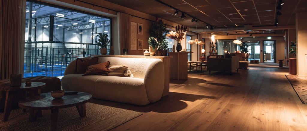 I anslutning till padelbanorna finns en generös uppvärmningsyta och smakfullt inredda omklädningsrum med bastu.